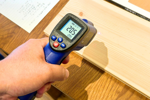 ▽▼さて、すぐに無垢材も測ってみますよ。結果は・・・