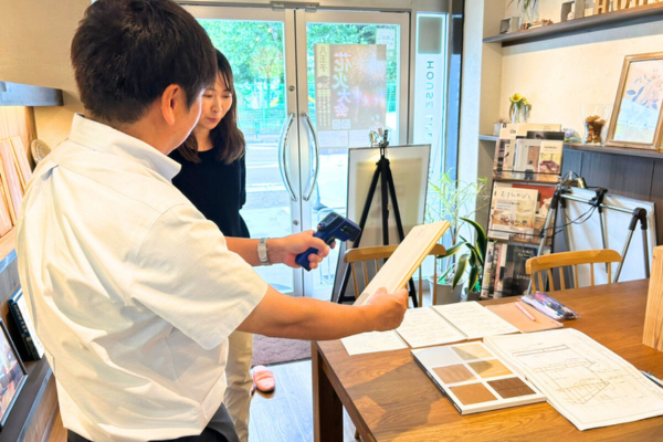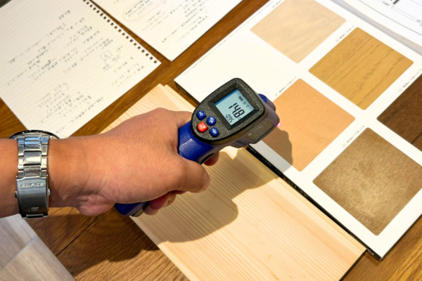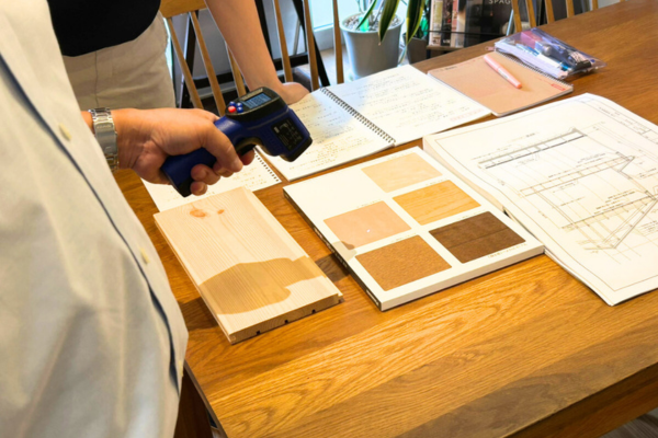 沼田「無垢材は熱伝導率が低いから外気の影響を受けにくくて暖かいんだよ。